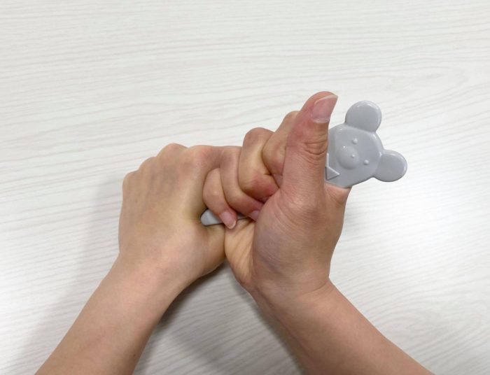 人差し指と親指の骨が交差する辺りにあるツボ<合谷(ごうこく)>を良い感じに押してくれたり、