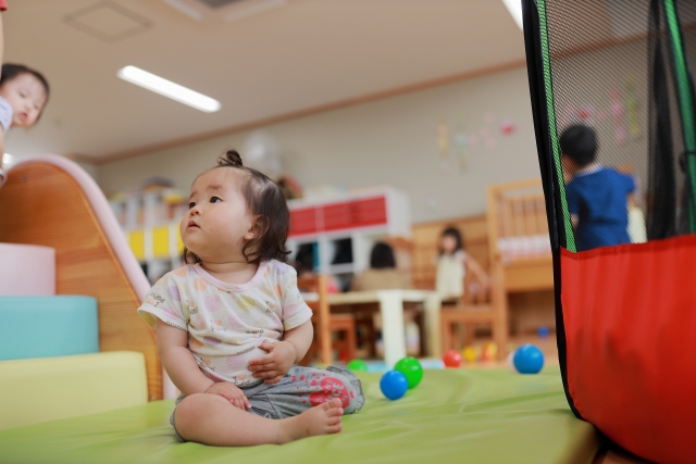 園庭や遊戯室が広い園の場合、空間を区切ることができるので、幼児と乳児の遊ぶ場所が重なっても、遠慮せずにのびのび遊べますし、子ども同士が接触して怪我をする危険も少ないんじゃないかなと思います。