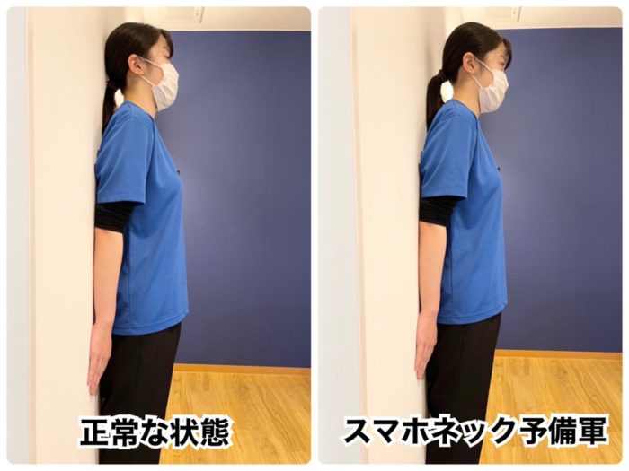 また、写真下のように頭が完全につかない場合は、スマホネックである可能性が高いので要注意です▼▼▼