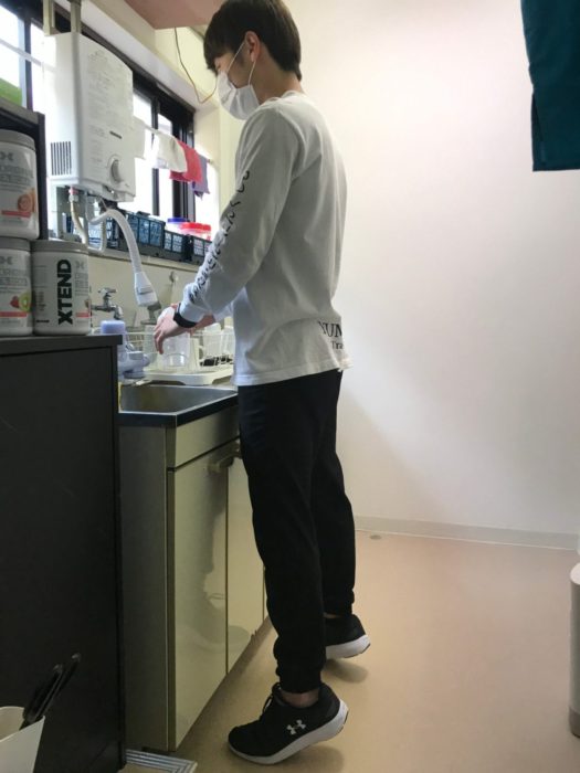洗い物中には、ふくらはぎの運動です。スクワットよりももっと簡単!かかとの上げ下げを繰り返すだけ。脚のむくみ解消や、脚やせにおすすめです。