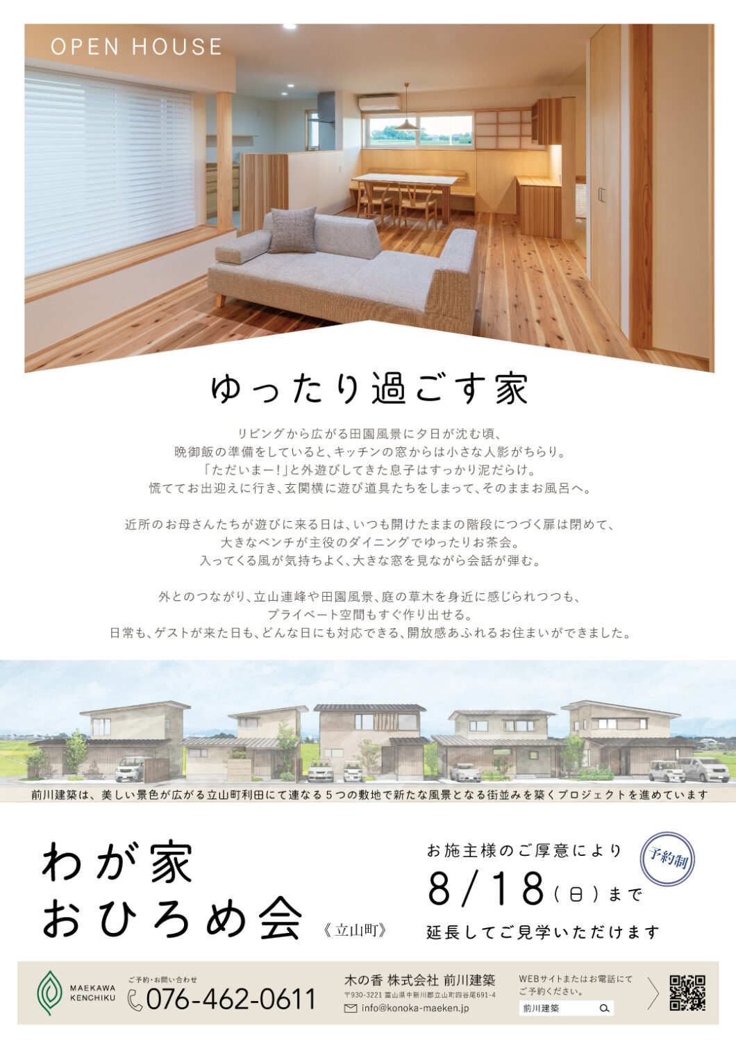 ☆お施主様のご厚意により、おひろめ会期間を延長して8月18日までご見学いただけます☆