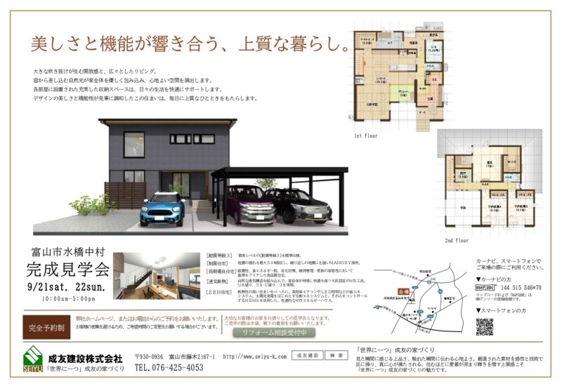 ※完全予約制での開催となりますので、弊社事務所・営業担当者まで事前にご予約お願いいたします。