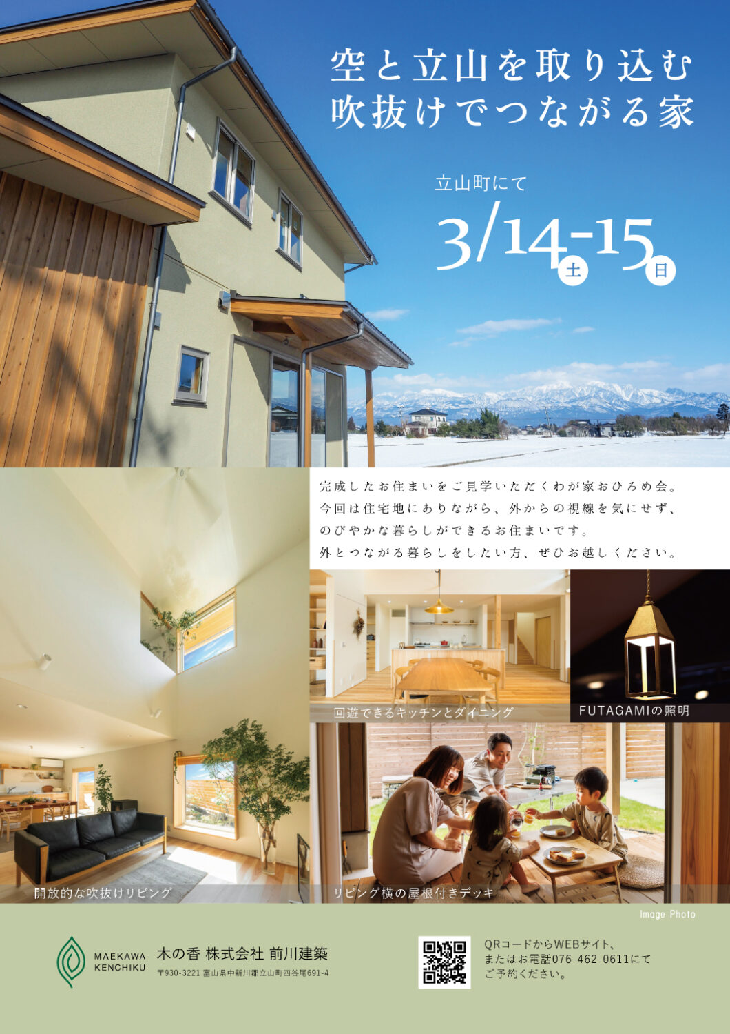 立山町にて、『空と立山を取り込む吹抜けでつながる家』の完成おひろめ会を開催します。