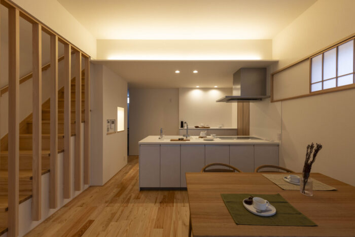 将来を見据え、1階だけで生活が完結するよう設計された「いづれは平屋」として暮らせる住まいです。階段の昇り降りの負担を減らし、動線をコンパクトに集約。今は広々と、将来は落ち着いた平屋のような感覚で住み続けられる柔軟性が魅力です。厳選された木材とWB工法が造り出す健やかな空気の中で、一生寄り添える安心の住環境を整えました。