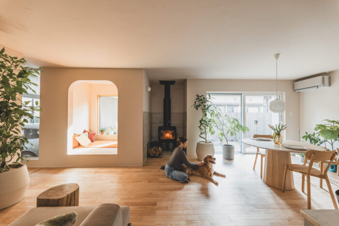 大きな窓から入る光、木の床のやわらかな触れ心地、火を囲む時間。